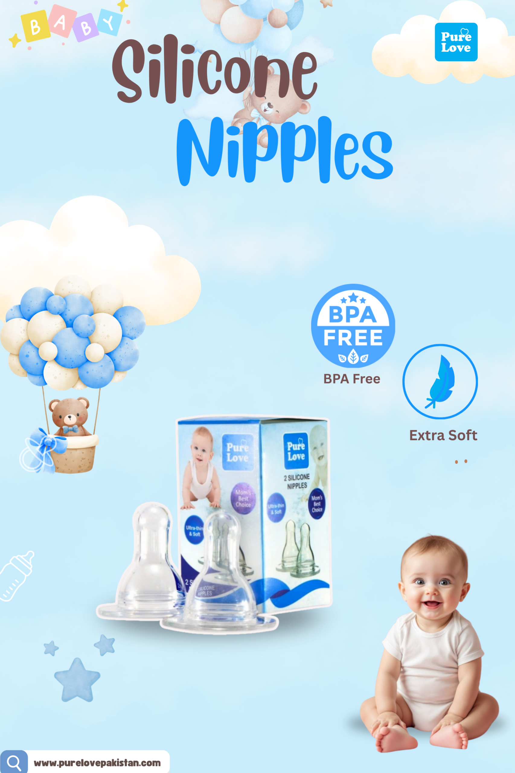 Pure Love- Baby Silicone Nipples (Pack of 2) \Best for Feeding Feeder Bottles