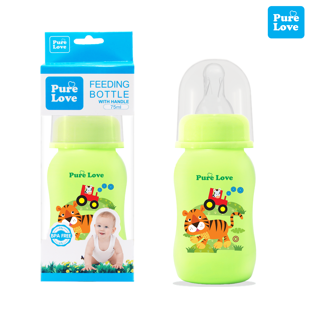 Lightweight and compact, the Pure Love Baby Feeding Bottle Coloured 75ml/2.5oz is perfect for use at home or on the go. It is also compatible with most standard bottle warmers and sterilizers, adding to its versatility and convenience. Combining practicality, safety, and a splash of color, this feeding bottle is an excellent choice for modern parents looking for a reliable and stylish feeding option for their little one.